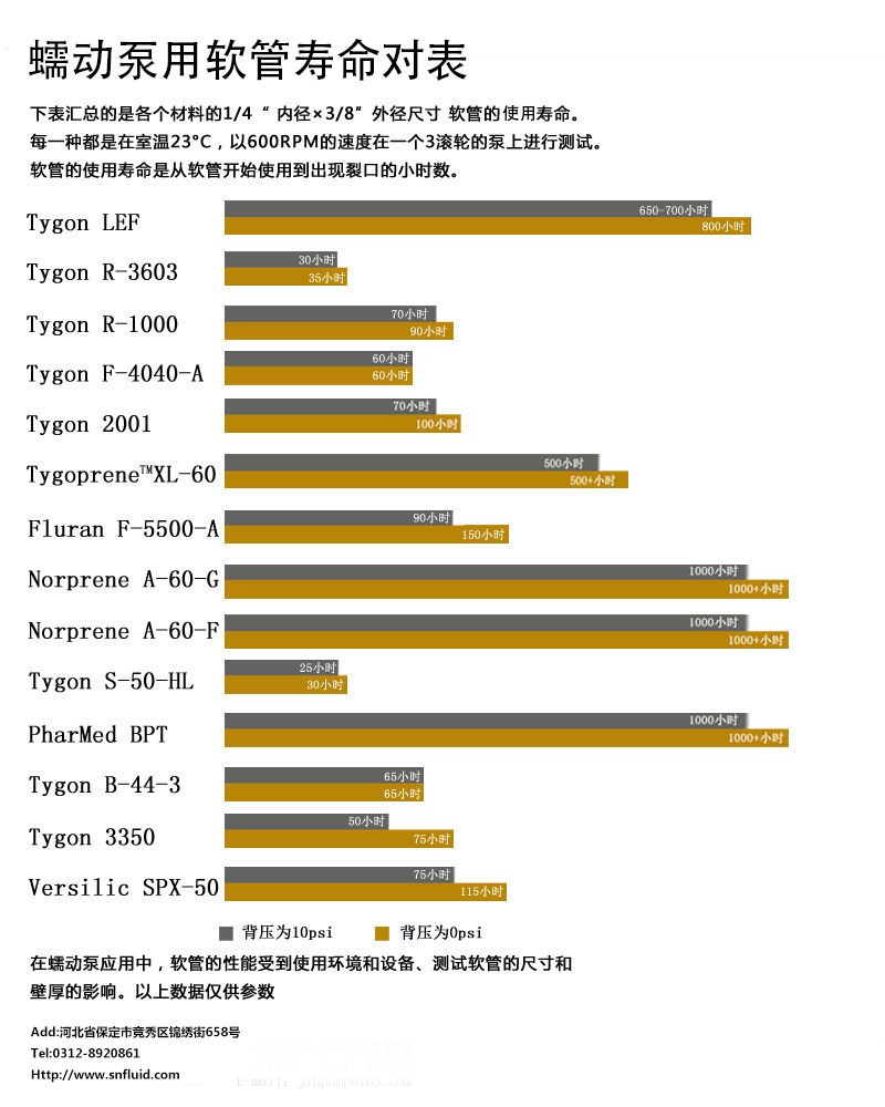 蠕動泵用軟管壽命對表