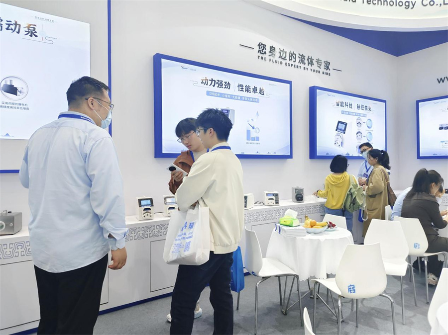 保定思諾流體科技有限公司的展位前人頭攢動,特別是其展示的AI智能蠕動泵能接入AI智能語音系統,實現萬物智聯,智能體驗讓AI解放雙手,還能實現全數據本地與云存儲,讓復雜控制的應用變得簡單易操作。新研發的具有高防爆和高防護等級的防爆觸摸屏伺服蠕動泵,0轉起步,高精度控制,擁有專業防爆觸摸屏,采用伺服防爆電機,體形小巧,動力強勁,震動小,噪音低,精簡的界面讓操作更便捷。同時還有調速模式、定速定量兩種控制模式可以自由切換。