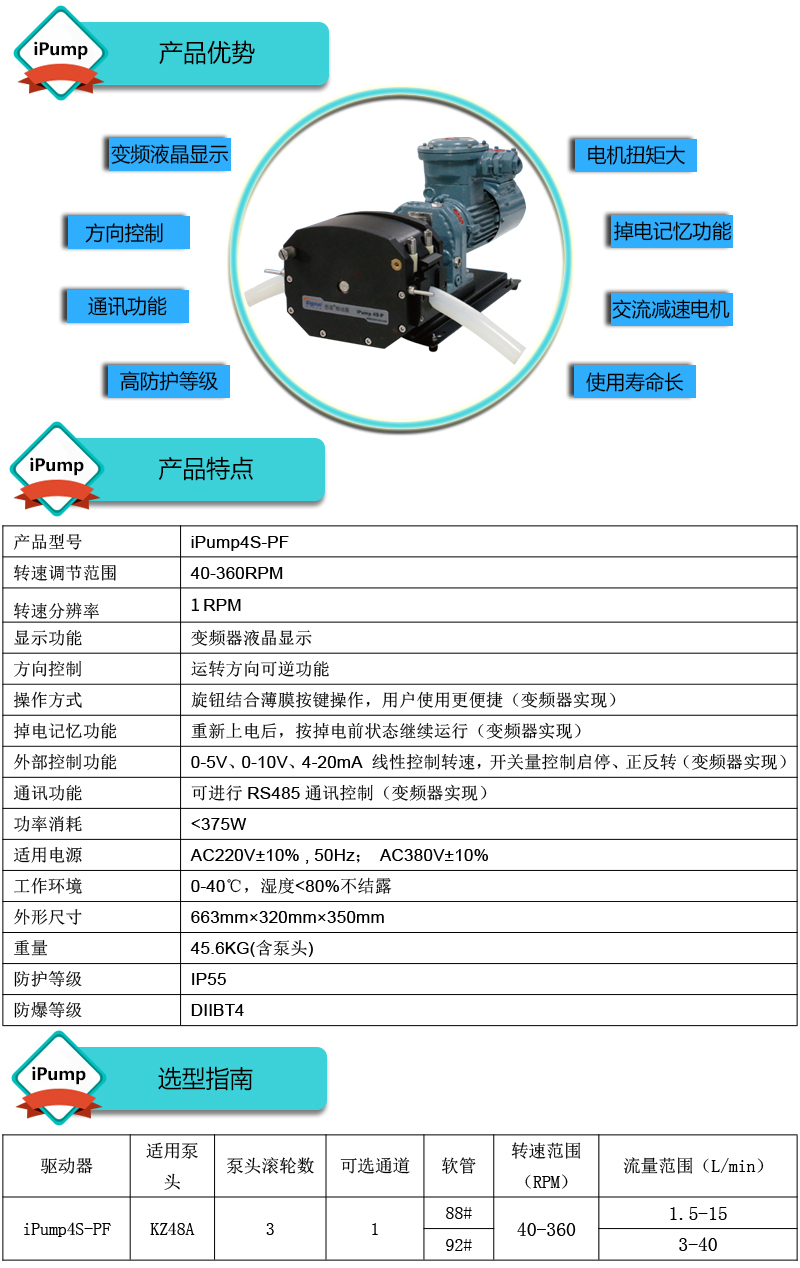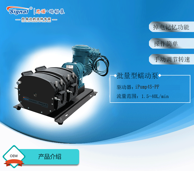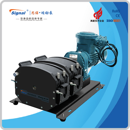 流量范圍:1.5-40L/min 彈性壓管結(jié)構(gòu),軟管壽命長,非常適合大流量液體傳輸 免維護交流減速電機驅(qū)動,變頻器調(diào)節(jié)轉(zhuǎn)速 全金屬泵頭,高精度,更可靠 防爆等級DIIBT4,適合易燃易爆環(huán)境使用