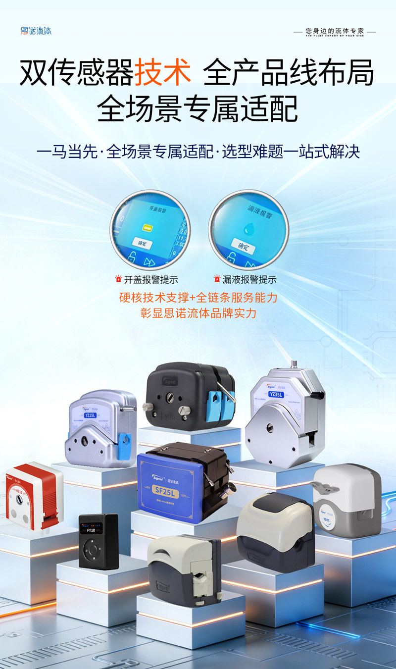 保定思諾流體科技的蠕動(dòng)泵,不僅能輸送,還能主動(dòng)防漏。開(kāi)創(chuàng)了“開(kāi)蓋檢測(cè)+漏液檢測(cè)”雙傳感系統(tǒng),相當(dāng)于給泵裝了兩個(gè)智能安全衛(wèi)士: