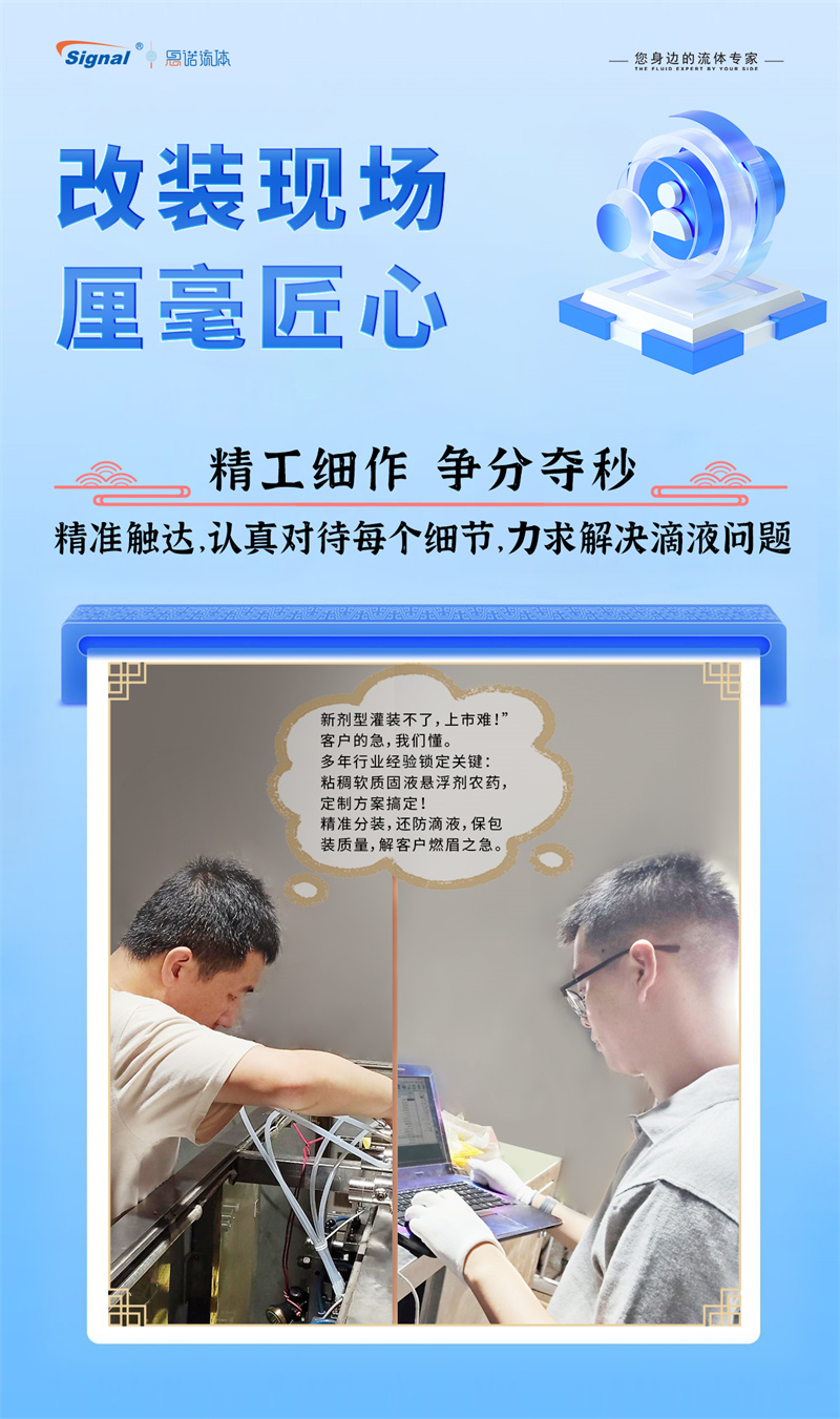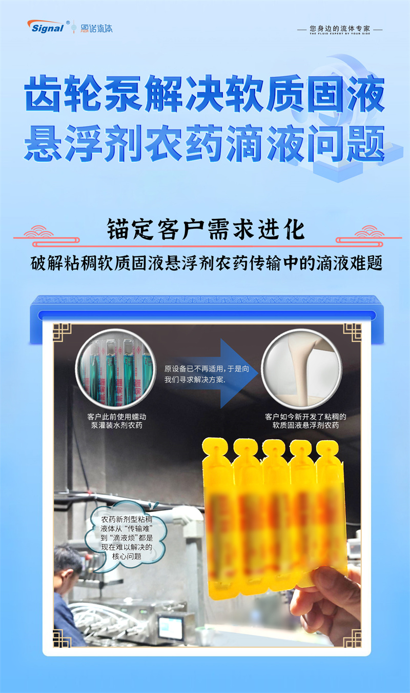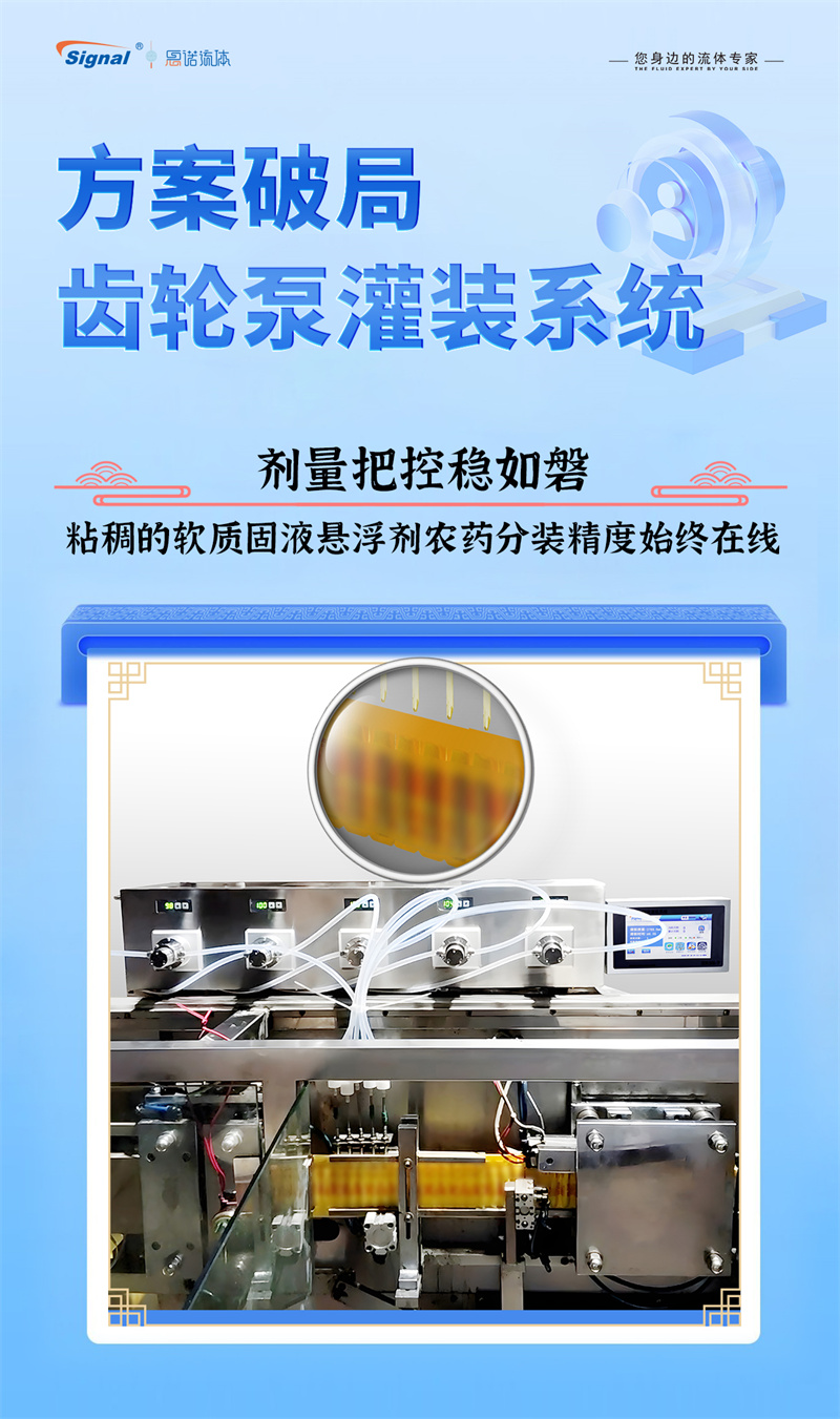 一位長(zhǎng)期使用我司蠕動(dòng)泵灌裝水劑農(nóng)藥的老客戶,因新開發(fā)粘稠的軟質(zhì)固液懸浮劑而面臨設(shè)備瓶頸,我們迅速響應(yīng),為其量身推薦了更優(yōu)解決方案——高性能齒輪泵灌裝系統(tǒng)。