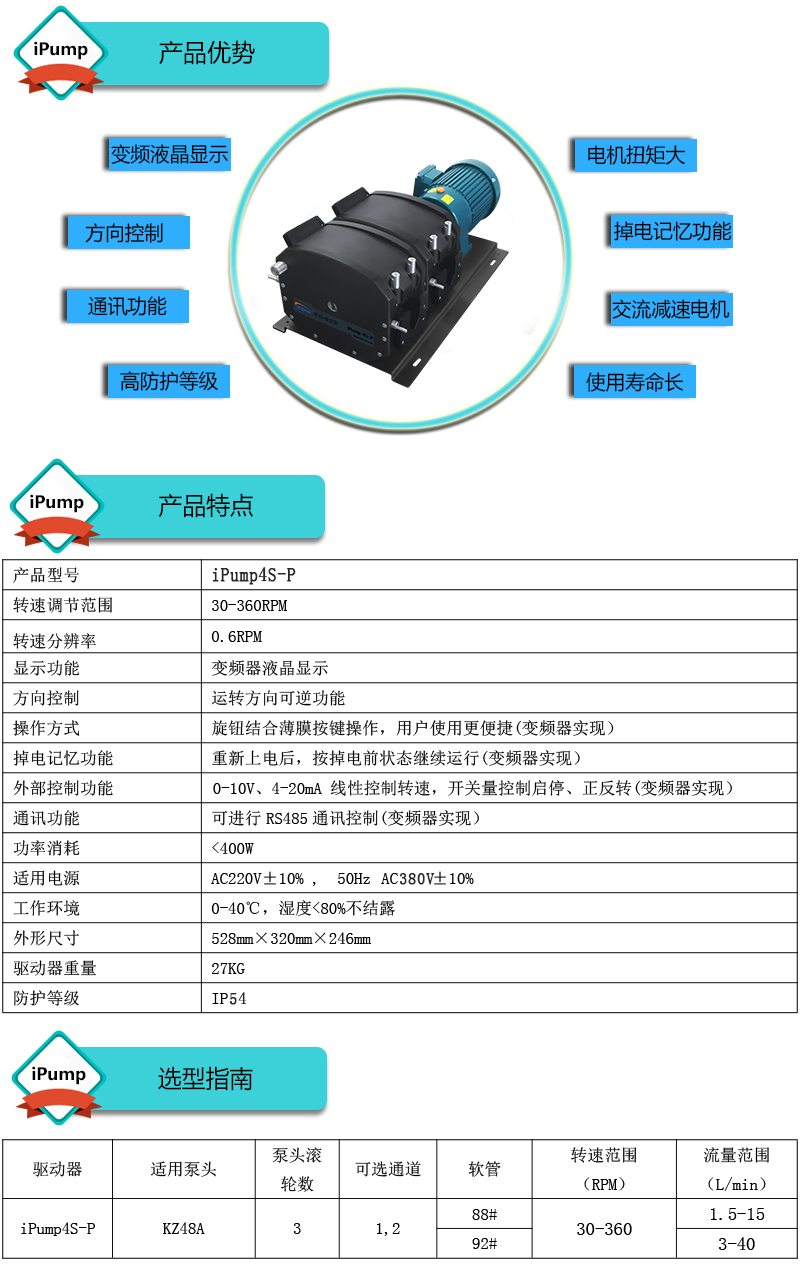 ? ? ?1.流量范圍:1.5-40L/min ? ? ?2.彈性壓管結(jié)構(gòu),軟管壽命長(zhǎng),非常適合大流量液體傳輸 ? ? ?3.免維護(hù)交流減速電機(jī)驅(qū)動(dòng),變頻器調(diào)節(jié)轉(zhuǎn)速 ? ? ?4.全金屬泵頭,高精度,更可靠 ? ? ?5.高防護(hù)等級(jí),更適合惡劣環(huán)境中使用